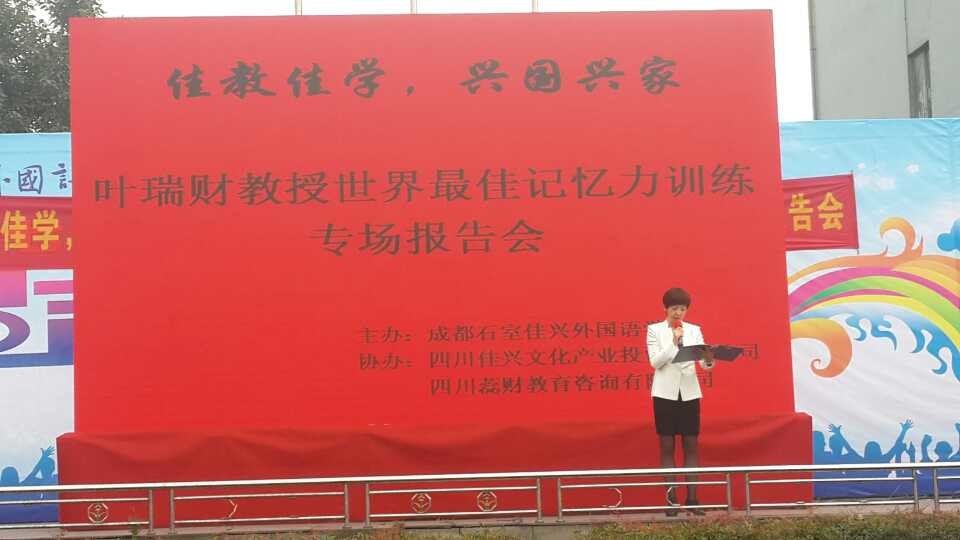 此次活动由佳兴集团、石室佳兴外国语学校和成都蕊财教育公司联合举办,旨在帮助我校学生学会增强记忆的科学方法,不断挖掘记忆潜能和提升自身的记忆力,提高学习能力。