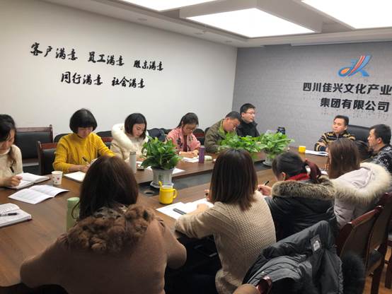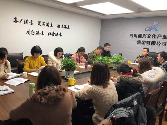 2018年1月24日下午,在集团总部会议室举行了2017年四川佳兴文化产业投资集团有限公司财务部年度总结会议。此次会议既是2017年的工作总结会议,也是2018年的工作计划和调整。