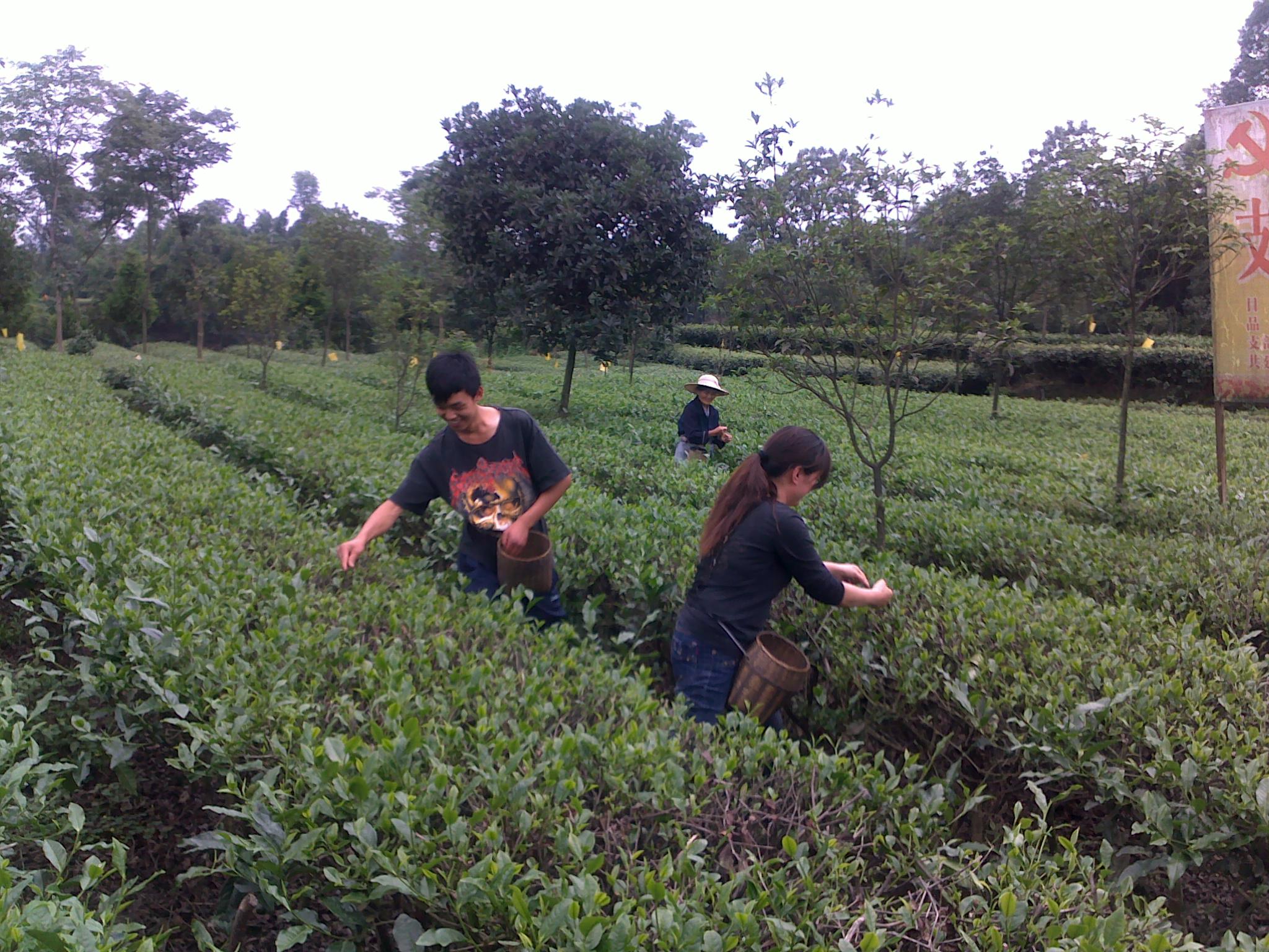 雅安市雨城区合江镇茶叶种植基地,当地农民劳动者正在采茶