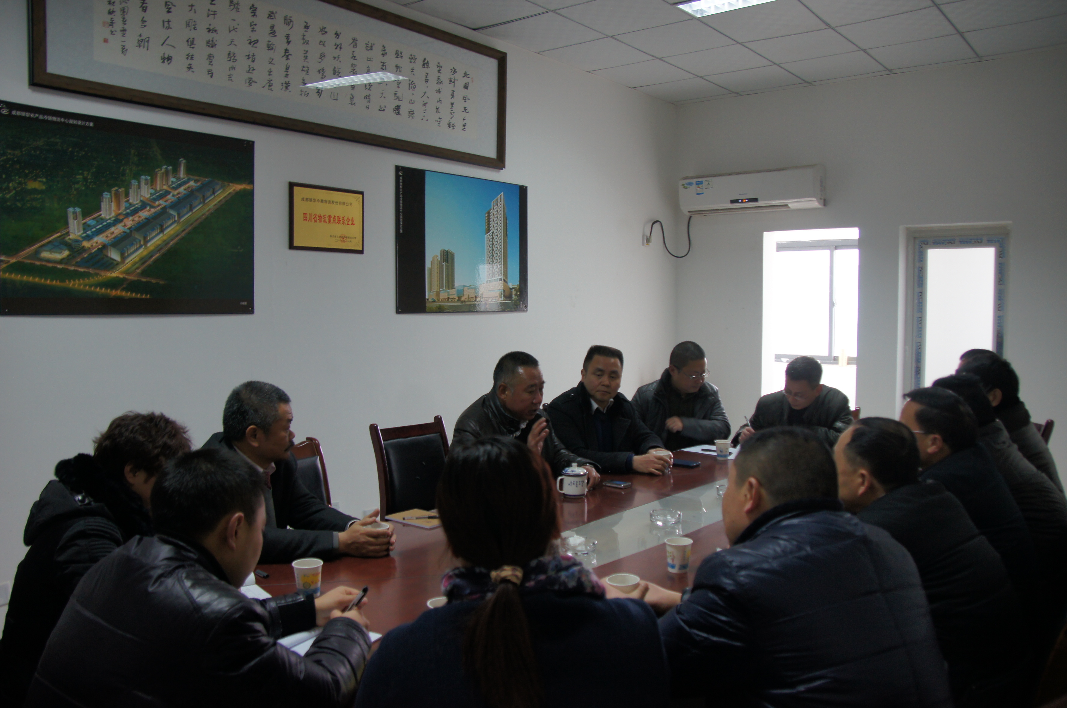 2014年2月14日,雅安荥经县县委常务、常务副县长倪林、县政府副县长陈洪忠、县国土资源局局长陈大贵及县投资促进局局长彭小千等有关部门领导 ,就荥经县青华农贸市场及农副产品交易中心建设规划方案等相关事宜,特来我司考察,并分别参观了青白江区银犁农产品冷链物流中心以及武侯区龙湾综合市场。